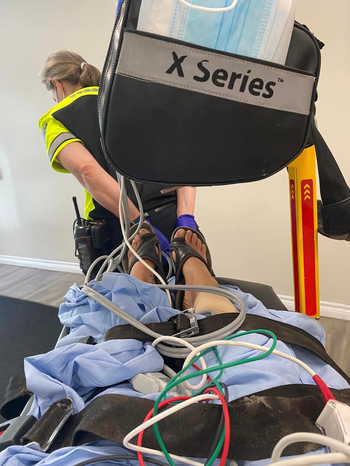 As I was loaded into the ambulance the paramedic gentle placed his hand on my leg.
